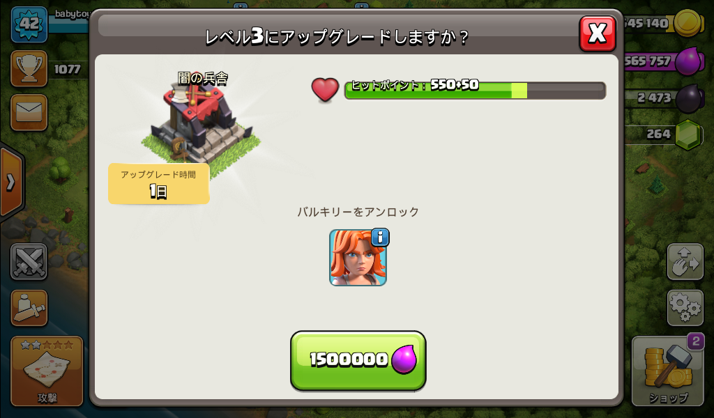 今日は攻められなかったので闇の兵舎をレベル3にアップグレードしました。